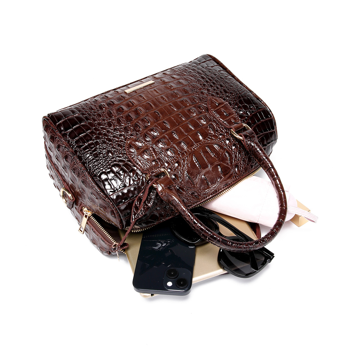 The Elegant Retro Women’s Travel Bag for Stylish Trips & Everyday Use is designed to solve all of that—beautifully. With its luxurious crocodile-texture finish and classic Boston bag silhouette, this handbag instantly elevates any look while remaining highly functional.