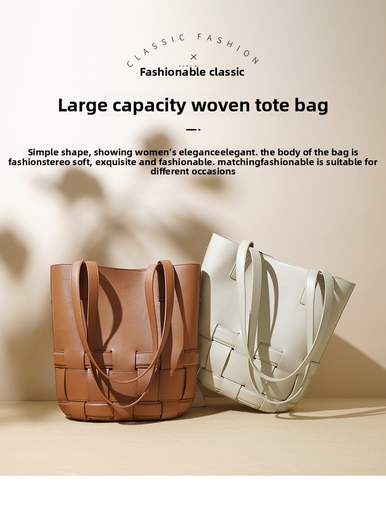 Elegant Woven Cowhide Tote Bag with Classic Appeal - Yourstylesite