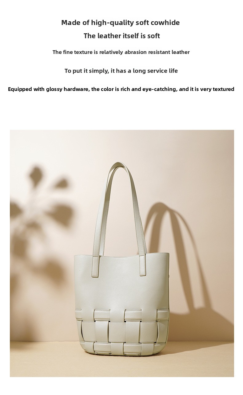 Crafted from soft, genuine two-layer cowhide, this elegant woven tote blends timeless charm with modern functionality. Whether carried over the shoulder or tucked stylishly under the arm, it enhances every outfit with understated luxury. The magnetic buckle closure ensures quick, secure access, making it perfect for work, travel, shopping, and beyond.
